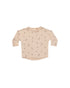 Zachtroze baby T-shirt met lange mouwen gemaakt van fluweelzachte organische geborstelde stof. De longsleeve heeft een drukknoop op de schouder voor gemakkelijk wisselen. De longsleeve heeft tulpen als print.