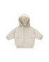 Het geweven jacket met capuchon heeft opgestikte zakken, met stof beklede drukknopen, elastische mouwopeningen en een warme capuchon voor de koelere dagen die komen gaan. Het jasje heeft een fijne, groene streep in de stof.