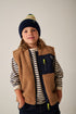Stoer jasje zonder mouwen in teddystof met donkerblauwe borstzak