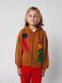 Cognackleurige hoodie met rits en kleurvlakken als accent