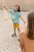 Turquoise T-shirt met print op de voorkant