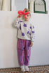 Lichtgrijze sweater met paarse vogels als alloverprint