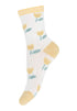 Mooie en vrouwelijke katoenen sok van MELTON. De sok heeft een bloemenmotief en decoratieve strepen op de elastische rand rond de enkel. Op de bloemen, hiel en teen zit een glitterdetail.