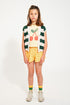 Mouwloze top in jersey flamé met brede armsgaten en elastische zoom voor een geplooid effect. Gedetailleerd met prints voor en achter.