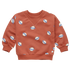 Deze baksteenkleurige sweater is gemaakt van geborsteld biologisch katoen en heeft een geribbelde halslijn – een comfortabel detail voor koudere dagen. Afgewerkt met een all-over Saturn-print voor een speelse, ruimtelijke twist.