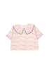 Maak een statement met het Zig Zag Shirt van pastelroze getextureerd katoen. Deze schattige top met knoopsluiting is zeker een hit bij je kind en heeft een zigzagsterrenprint met overhemdkraag. Het blauwe contrasterende borduursel maakt het geheel helemaal af. Een shirt voor elke gelegenheid. Met deze blouse zal je meid schitteren als een ster!