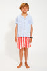 Hawaiiaans shirt in zachte denim met losse pasvorm en open kraag. Opgestikte voorzak met blauw logoborduurwerk. Houten knopen aan de voorkant.